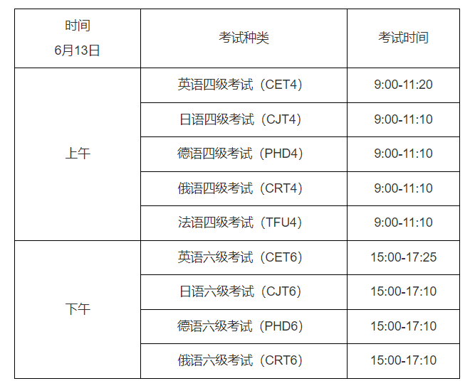 2026上半年英语四六级考试时间及考试科目已公布,口试5月23-24日举行,笔试6月13日举行,5月19日起打印口试注考证,6月5日起打印笔试准考证,具体详情如下: