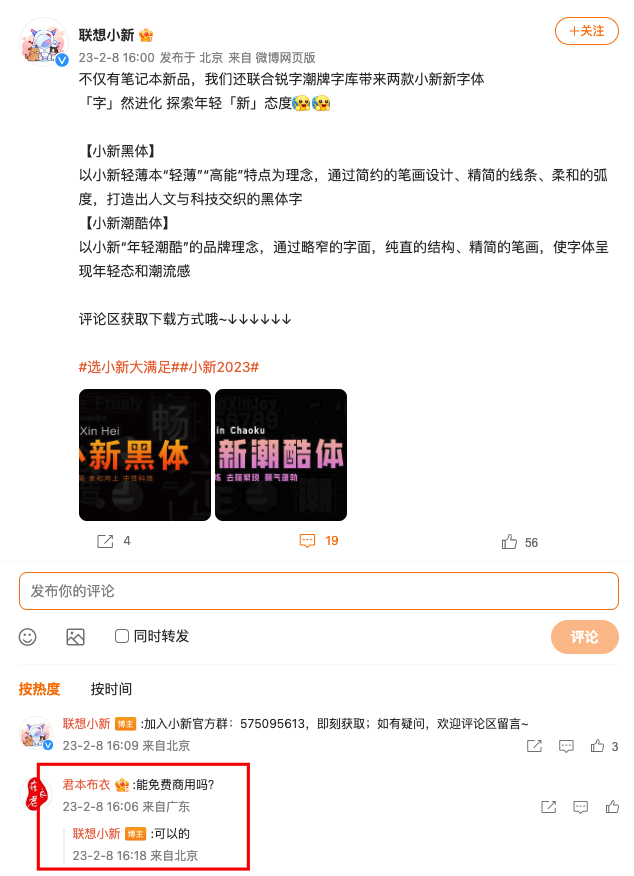 联想小新潮酷体是联想小新产品线联合锐字潮牌字库推出的一款免费商用字体。